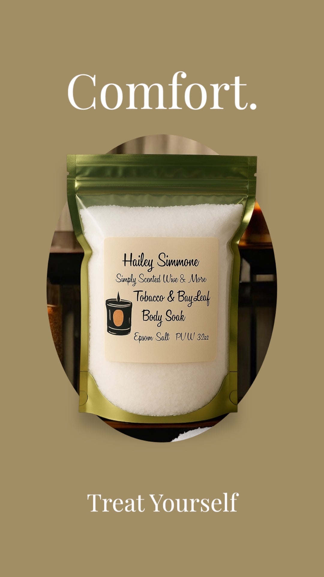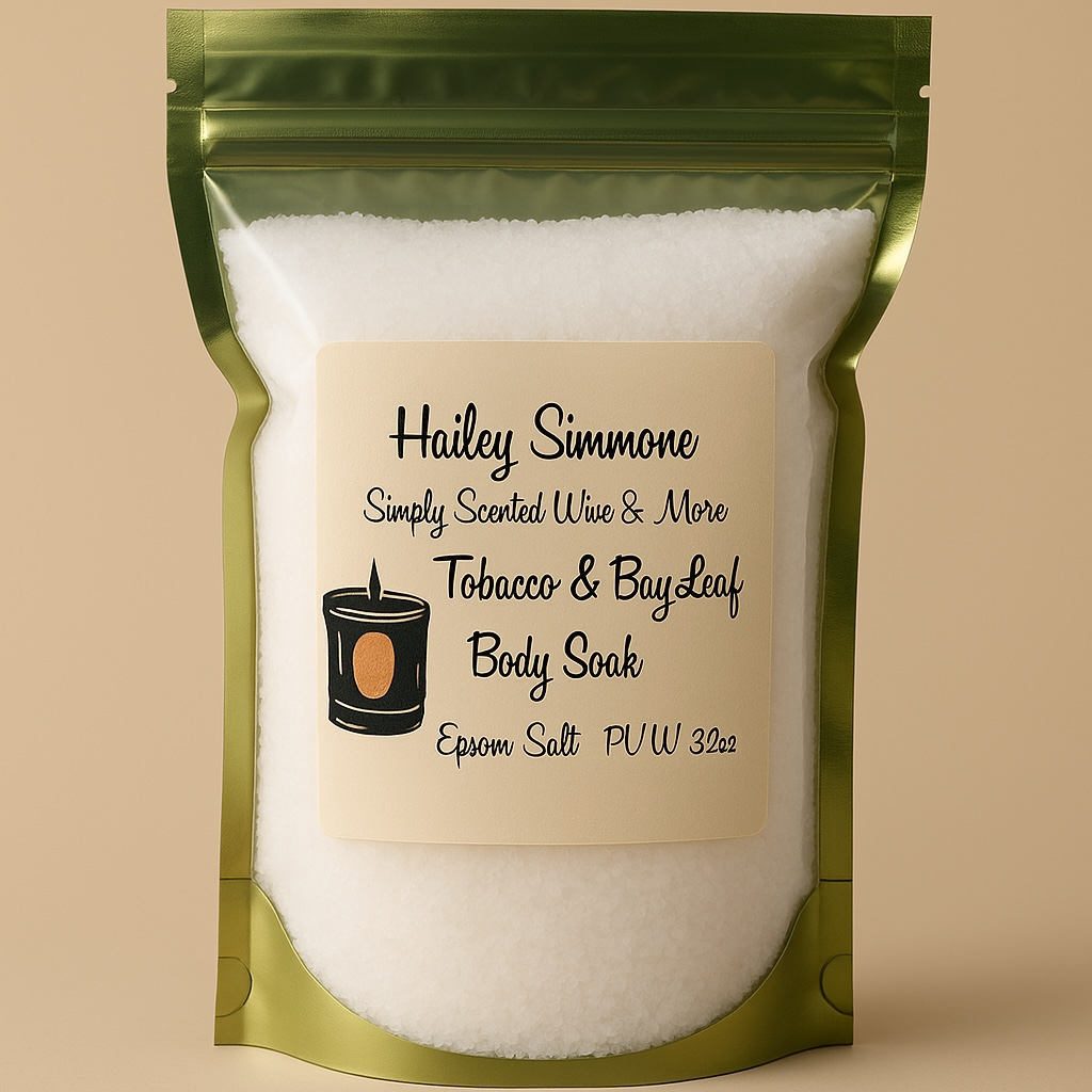 Unwind with the sophisticated aroma of our Tobacco & Bay Leaf Epsom bath salts. This refined blend delivers a truly masculine experience, layering crisp citrus and herbal florals over a warm base of cedar, sandalwood, and musk, with just a hint of soft tobacco. Transform your bath into a revitalizing escape.