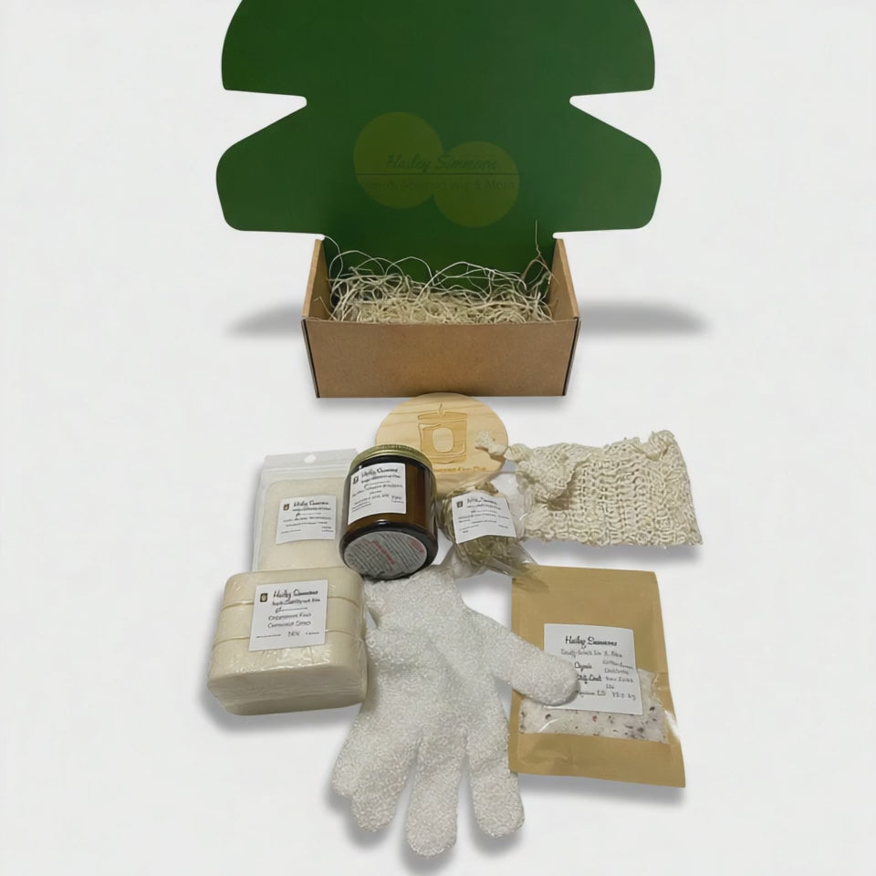 Soothe your soul and invigorate your senses with this luxurious self-care set. Transform your space into a cozy autumn retreat with the warm and inviting Buttercream Pumpkin Spice candle and car diffuser. Pamper your skin with our exfoliating wash mitt and soap saver pouch for a silky-smooth feel. Melt away tension with the fragrance-free magnesium soaking salts and indulge in the decadent Coco Butter Cashmere magnesium sugar scrub. Finish your ritual by resting your favorite drink on the beautifully crafted, custom-engraved coaster—a perfect touch to your new sanctuary.